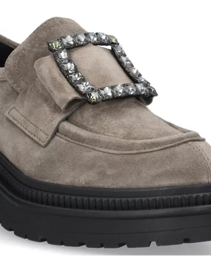 Zapato Para Mujer Alpe Clay, Fabricado En Piel (Baby Silk) De Color Taiga Con Tacon De 3 Cm, Suela Antideslizante Y Puntera Redonda, Sin Cierre.