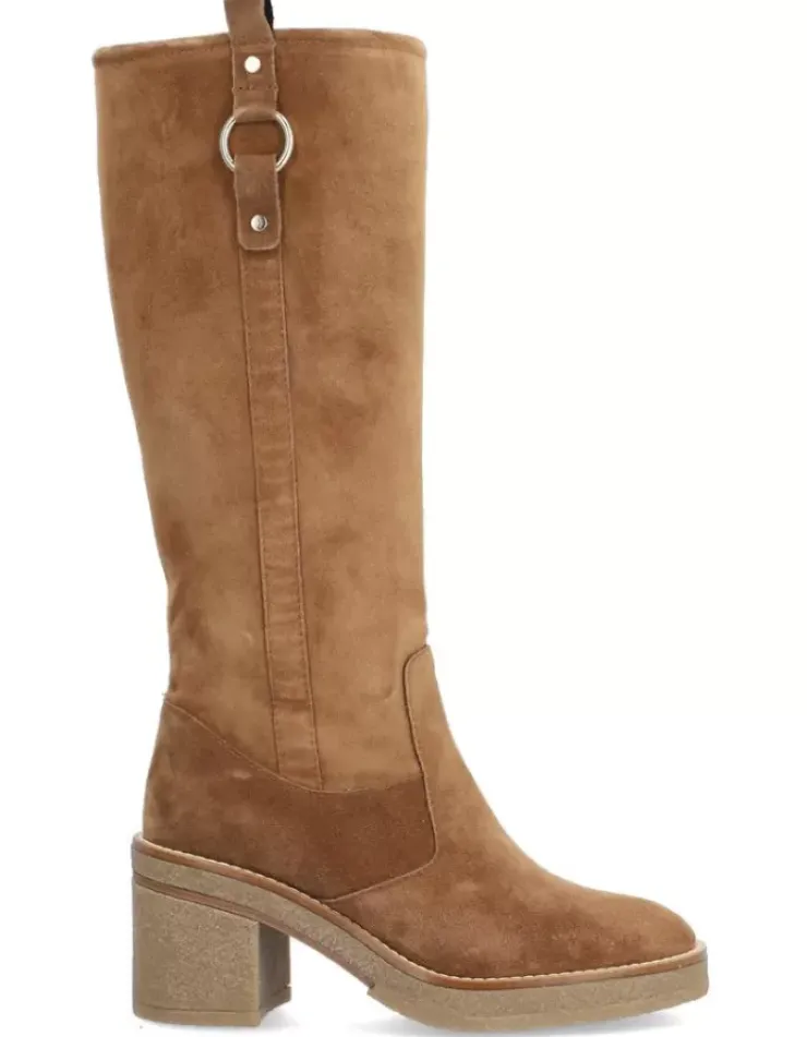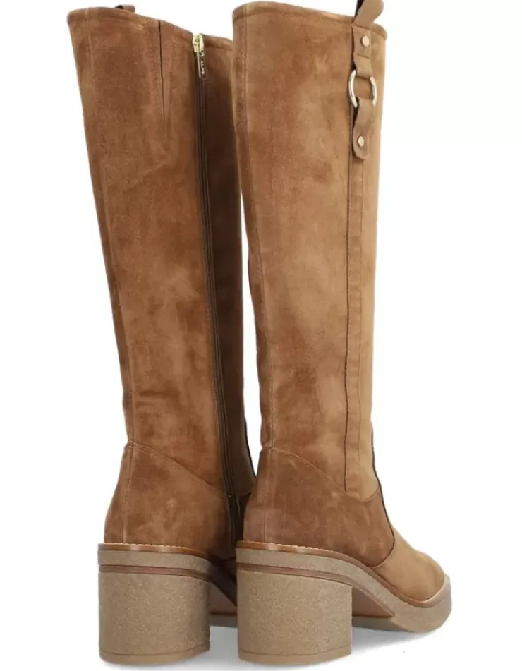 Bota Para Mujer Alpe Janis, Fabricada En Piel (Baby Silk) De Color Cuero Con Tacon De 7,5 Cm, Suela Antideslizante Y Puntera Redonda, Con Cierre Mediante Cremallera Y Cana Alta.