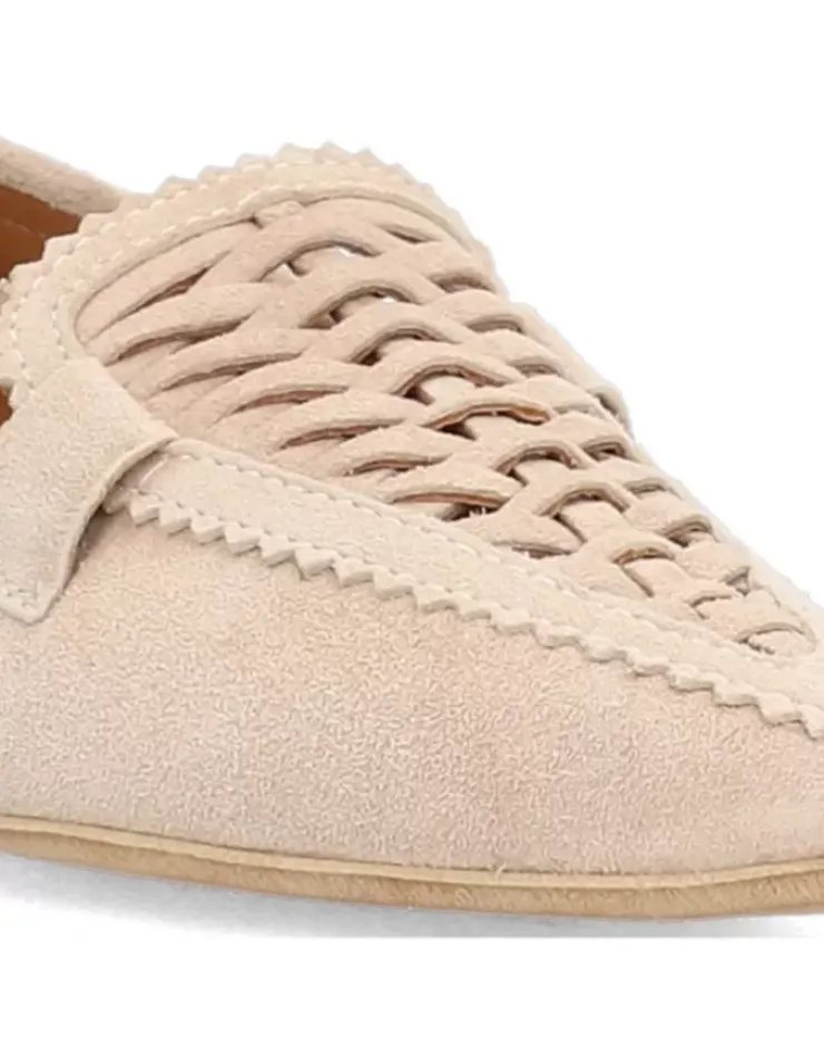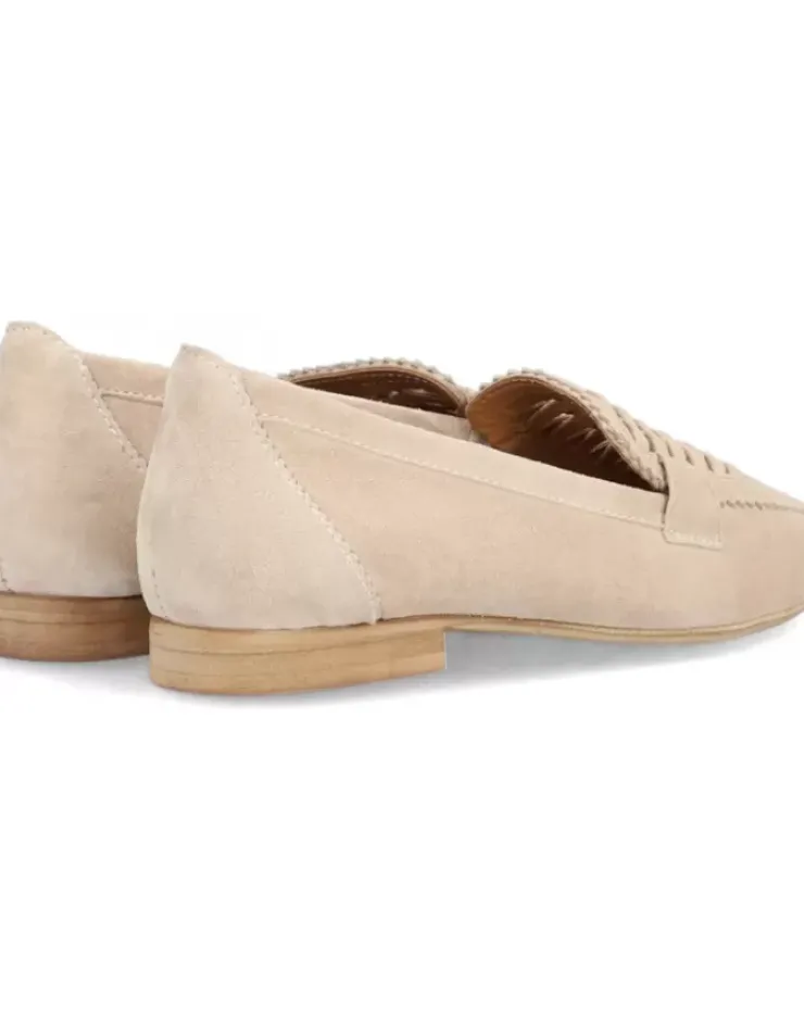 Mocasin Para Mujer Alpe Niza, Fabricado En Piel (Baby Silk) De Color Lino Con Tacon De 1 Cm, Suela Antideslizante Y Puntera Afilada, Sin Cierre.