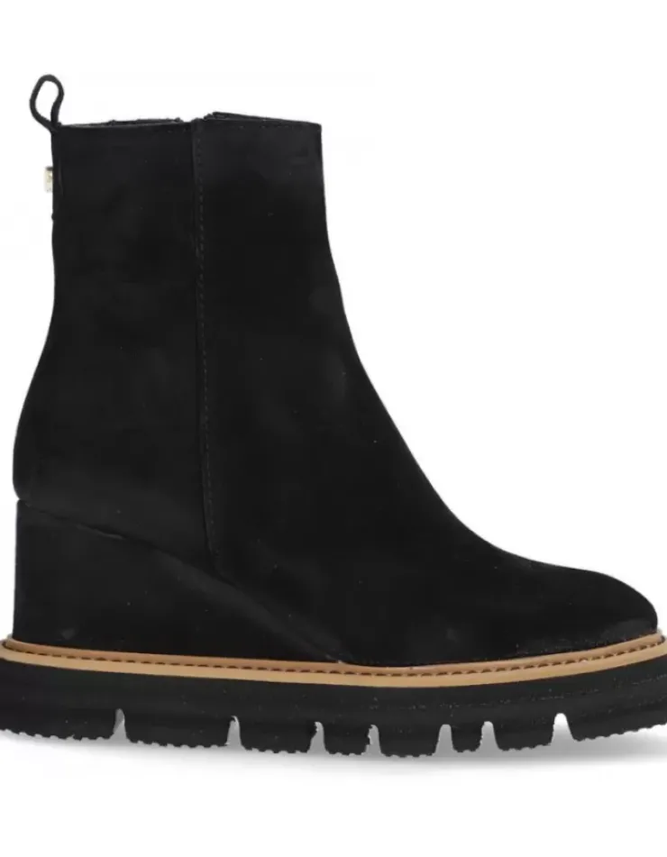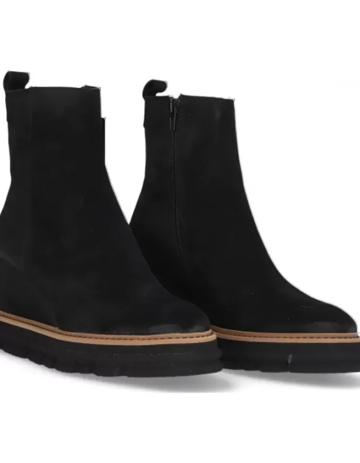 Botin Para Mujer Alpe Sidney, Fabricado En Piel (Baby Silk) De Color Negro Con Cuna De 8 Cm, Suela Antideslizante Y Puntera Redonda, Con Cierre Mediante Cremallera Baja.