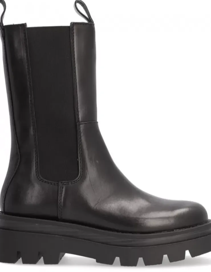 Bota Para Mujer Alpe Soho, Fabricada En Piel (Becerro) De Color Negro Con Tacon De 5 Cm, Suela Antideslizante Y Puntera Redonda, Sin Cierre Media.