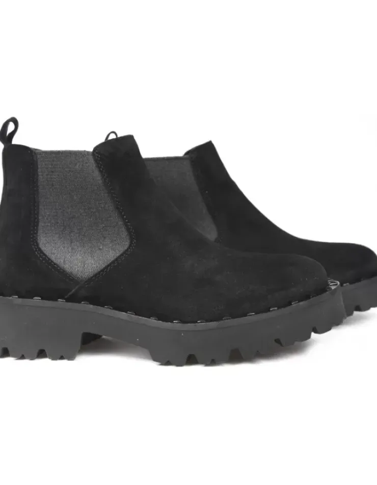 Botin Para Mujer Alpe Verona, Fabricado En Piel (Baby Silk) De Color Negro Con Tacon De 4,5 Cm, Suela Pu Y Puntera Redonda, Sin Cierre Y Cana Baja.
